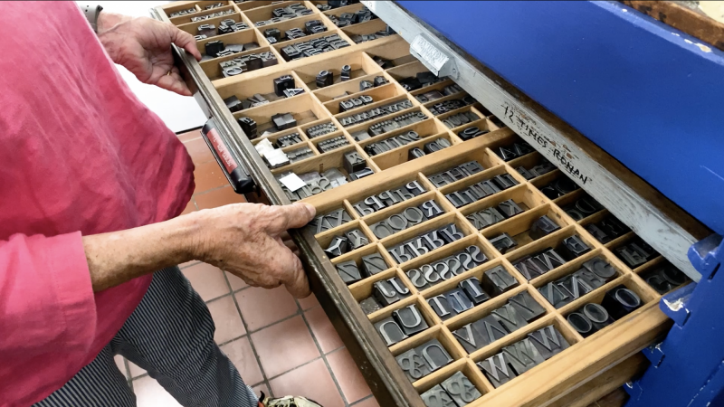 Conoce a Sibyl Rubottom, jefa del taller de impresión, que también enseña el arte de los libros y grabado junto con Morgan Miller III. Entérate de más leyendo el artículo y después echa un vistazo al taller mediante un recorrido en video con Rubottom, para que veas las prensas y las cajas tipográficas que contienen tipos en metal y madera.