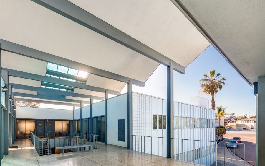 Krisel, con sede en Los Ángeles, dirigió una vez una de las compañías de arquitectura más grandes del país y diseñó más casas en San Diego que cualquier otro arquitecto (hasta el día de hoy). Él diseñó este edificio adyacente a Liberty Station para que sirviera como la oficina de su compañía, Palmer & Krisel, en San Diego. La señalización original y el nombre del edificio se restauraron recientemente.