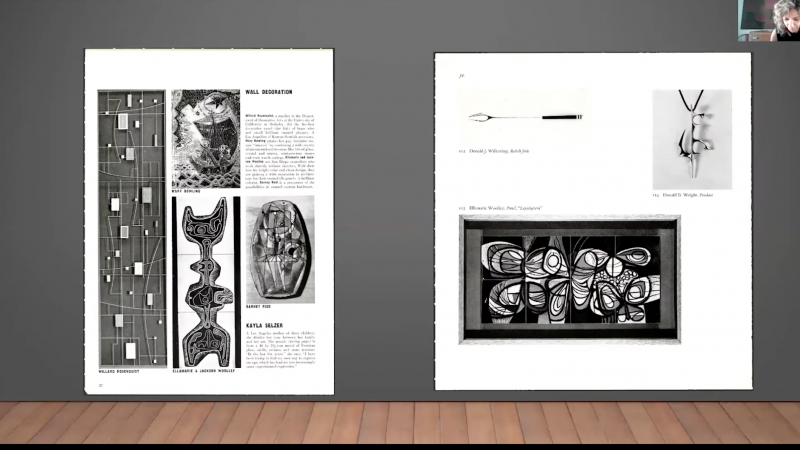 Barbara Hanson Forsyth nos guiará a través de la historia de Ellamarie (1913-1976) y Jackson (1910-1992) Woolley, una de las más prominentes y prolíficas parejas dedicadas al diseño en San Diego y a las que se les recuerda (aunque trabajaron en varios materiales) por su trabajo en metal esmaltado. Sus procesos creativos a nivel individual y colectivo resultaron en un increíble conjunto de obras que van desde pequeños objetos decorativos como platos y colgantes a pedidos de arquitectura monumental. Esta plática explorará la realización de su arte y las significativas contribuciones que realizaron en el panorama de San Diego y de la arquitectura durante mediados de siglo. Estará incluida la historia de Variations on a Gold Theme, el mural magistral de 1965 que es parte de la colección permanente del Mingei y que está programado para ser la pieza central del jardín en el patio del nuevo museo que abrirá en el 2021.